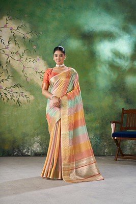 Elegant Zari Weaving Linen Cotton Silk Saree