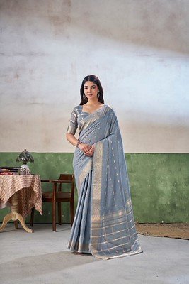 Elegant Zari Weaving Linen Cotton Silk Saree