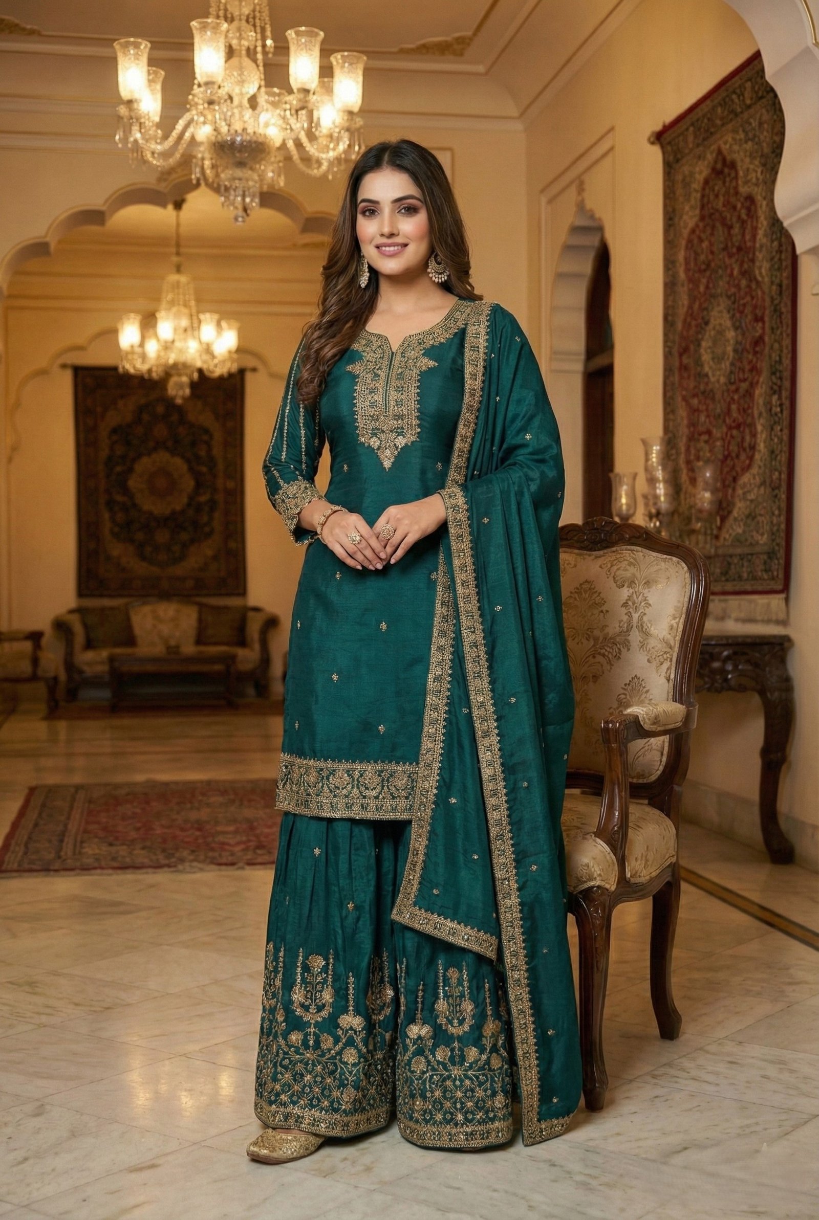 Perfect for weddings, festive occasions, and grand celebrations, this set reflects timeless elegance blended with contemporary charm.