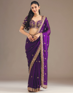 Regal Embroidered Satin Silk Saree Set WITH UNSTITCHED BLOUSE
